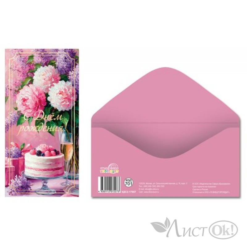 Конверт для денег "С Днем рождения!" 170х82 мм, золотая фольга, КДС2-17657 Сфера
