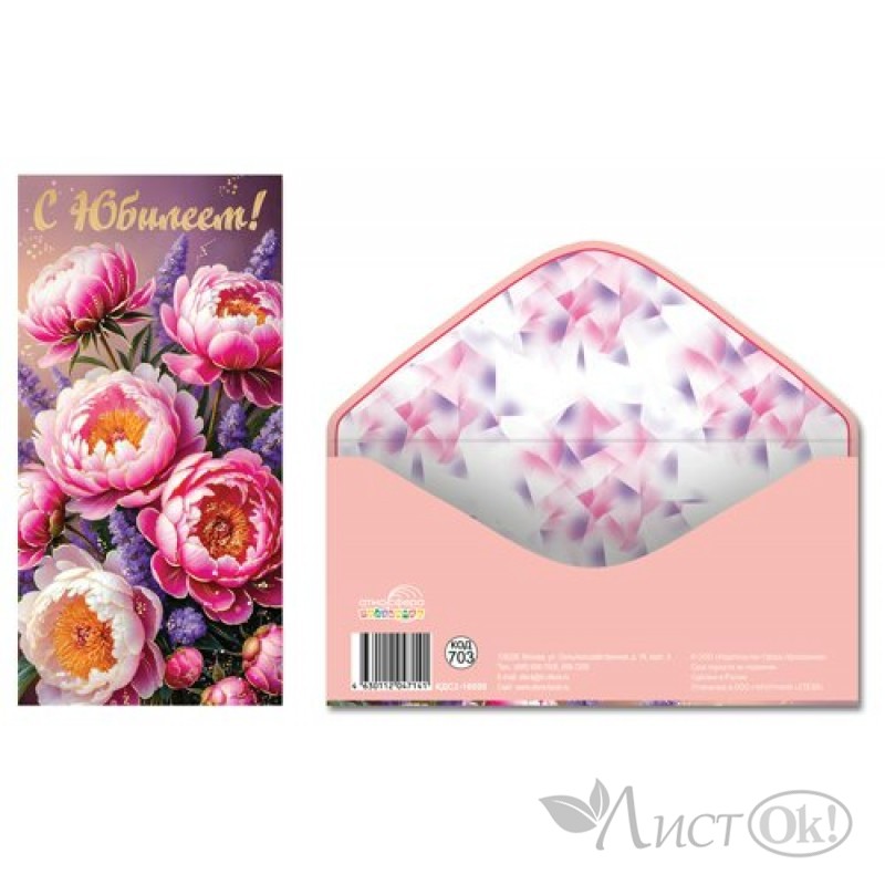 Открытка-конверт для денег, украшенная отделкой из золотой фольги, поможет красиво оформить подарок юбиляру. Конверт выполнен из плотного картона, поэтому надолго сохранит свой нарядный внешний вид.