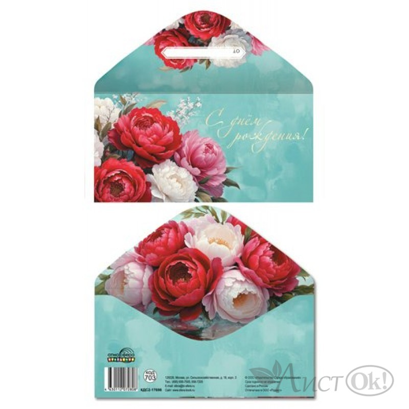 Открытка-конверт для денег, украшенная отделкой из золотой фольги, поможет красиво оформить подарок подруге, коллеге или близкому человеку. Конверт выполнен из плотного картона, поэтому надолго сохранит свой нарядный внешний вид.