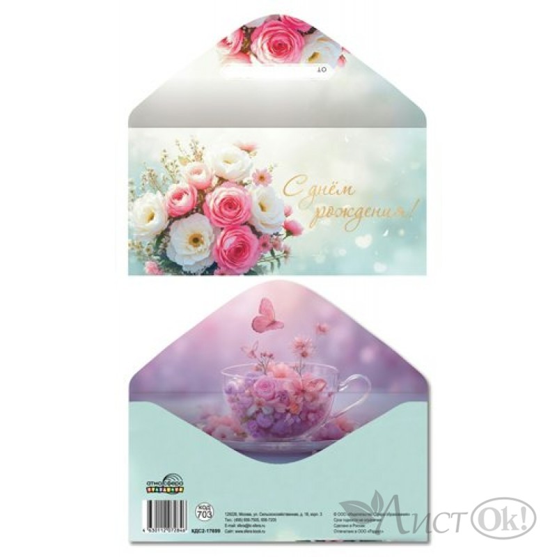 Открытка-конверт для денег, украшенная отделкой из золотой фольги, поможет красиво оформить подарок подруге, коллеге или близкому человеку. Конверт выполнен из плотного картона, поэтому надолго сохранит свой нарядный внешний вид.