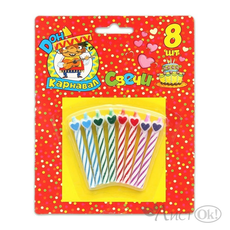 Набор Свечей для торта "Сердечки" 8 шт Парафин С-1242