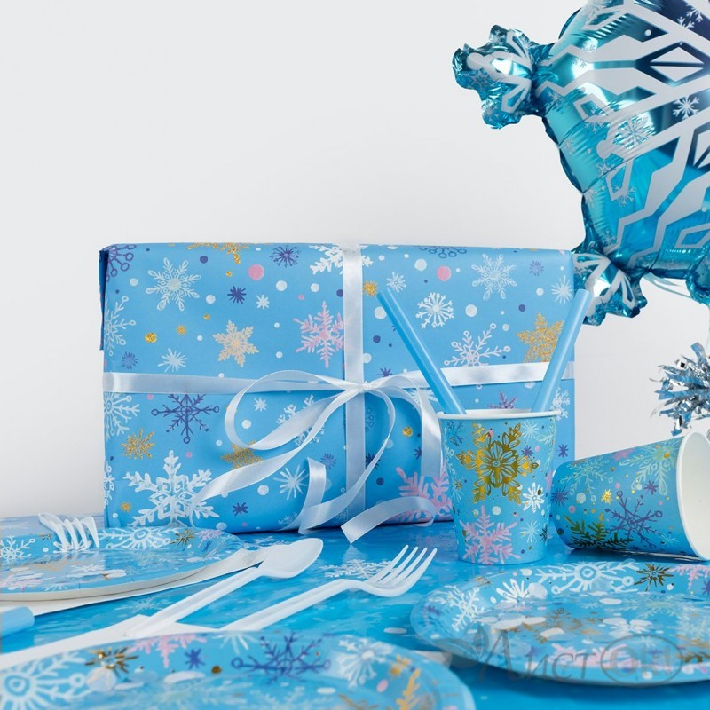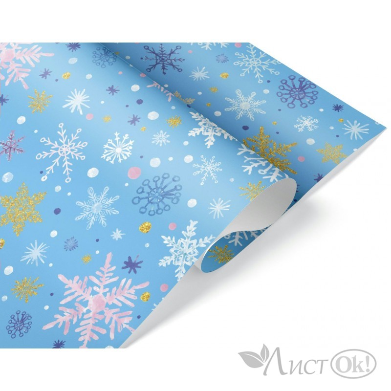 Бумага упаковочная 70х100см "Волшебные снежинки", Голубой, 1 шт. 80гр 2050722/1 Дон Баллон