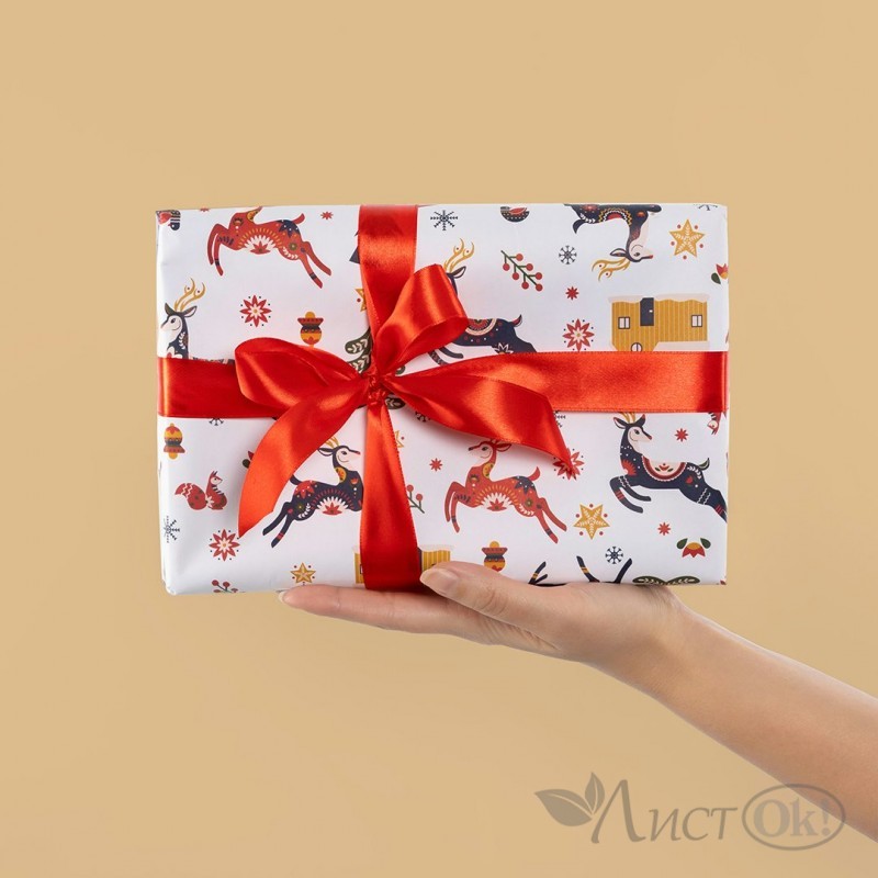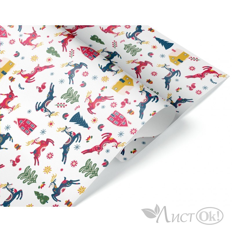 Бумага упаковочная 70х100см "Новогодние олени", 1 шт. 80гр 2050730/1 Дон Баллон
