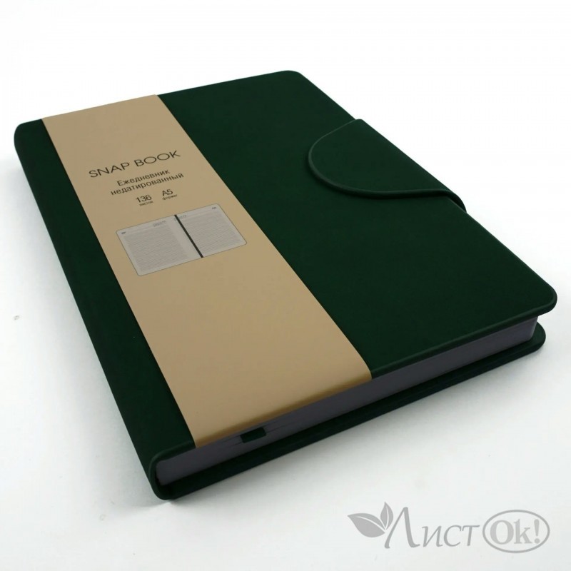 Ежедневник недатир. А5, 136л. (Snap book) Иск.кожа 7Б. "Еловый" Магнитный клапан с термотиснением. Скр.угл. линия ЕКСБ52513607 Listoff