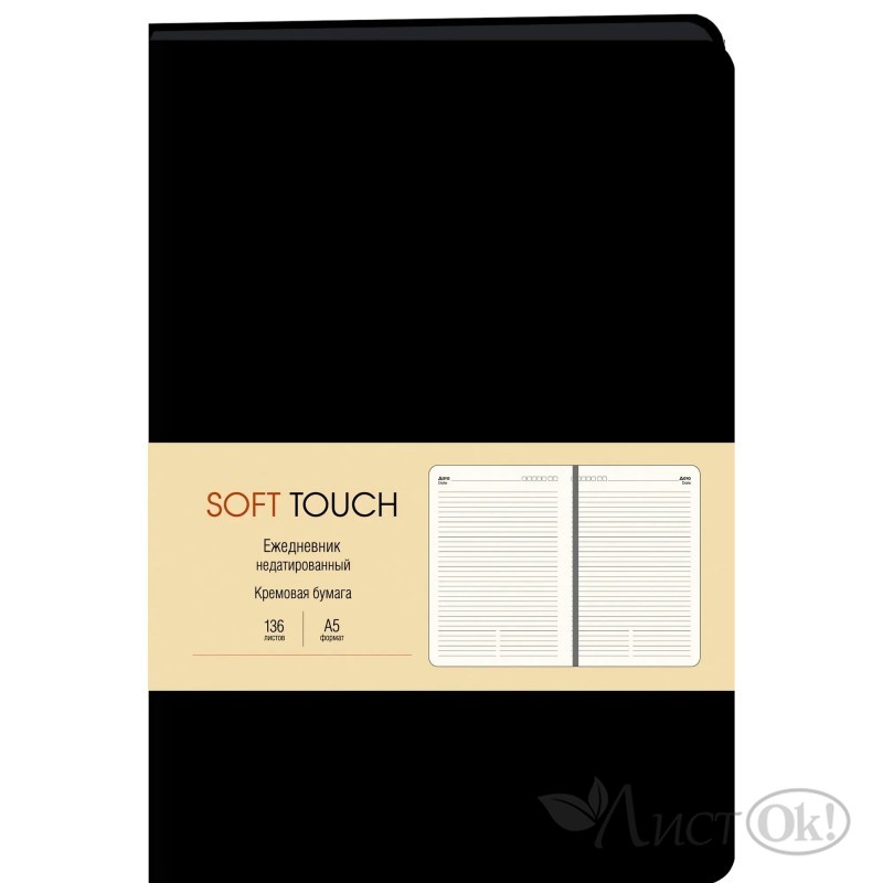 Ежедневник недатир. А5, 136л. Иск.кожа (SOFT TOUCH). Интеграл. "Черный" Запеч.торец.,тонир, скр.угол.,ляссе ЕКСТ52113601 Listoff