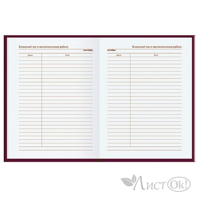Ежедневник учителя, недатированный, 256 страниц, формат А6+, твердый переплет, плотность 65 гр/м2. Внутренний блок - высококачественная офсетная бумага. Информационно-справочный блок включает календарь на 4 года, документацию для учителя, классный журнал, таблицы по внеклассной и методической работе, тематическое планирование, успеваемость, страницы с почасовым планированием дня. На страницах ежедневника проставлены число и месяц, но нет привязки ко дню недели и году. Печать в одну краску. Обложка - 7БЦ, полноцветная печать с выборочным УФ-лакированием.