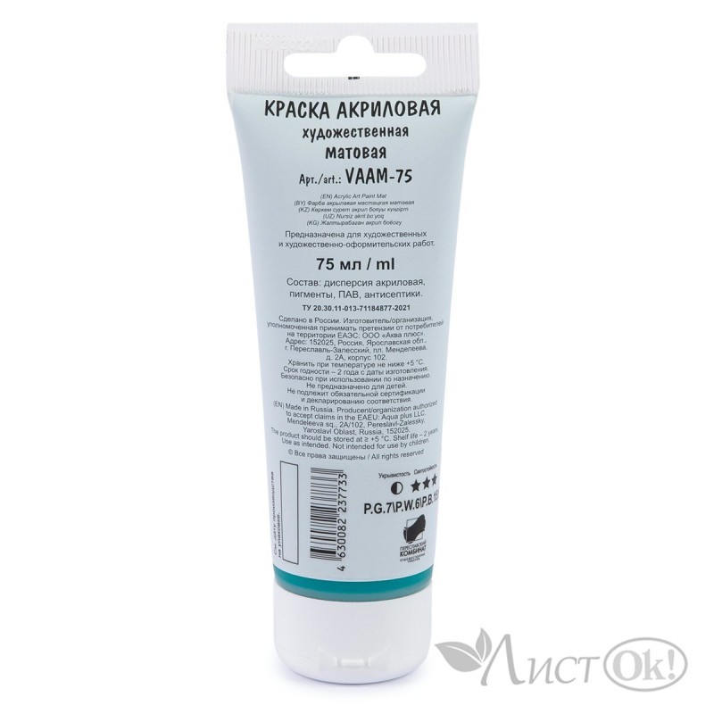 Краска акрил. 75 мл. матовая Studio, VAAM -75, 606 Изумрудный "VISTA-ARTISTA"