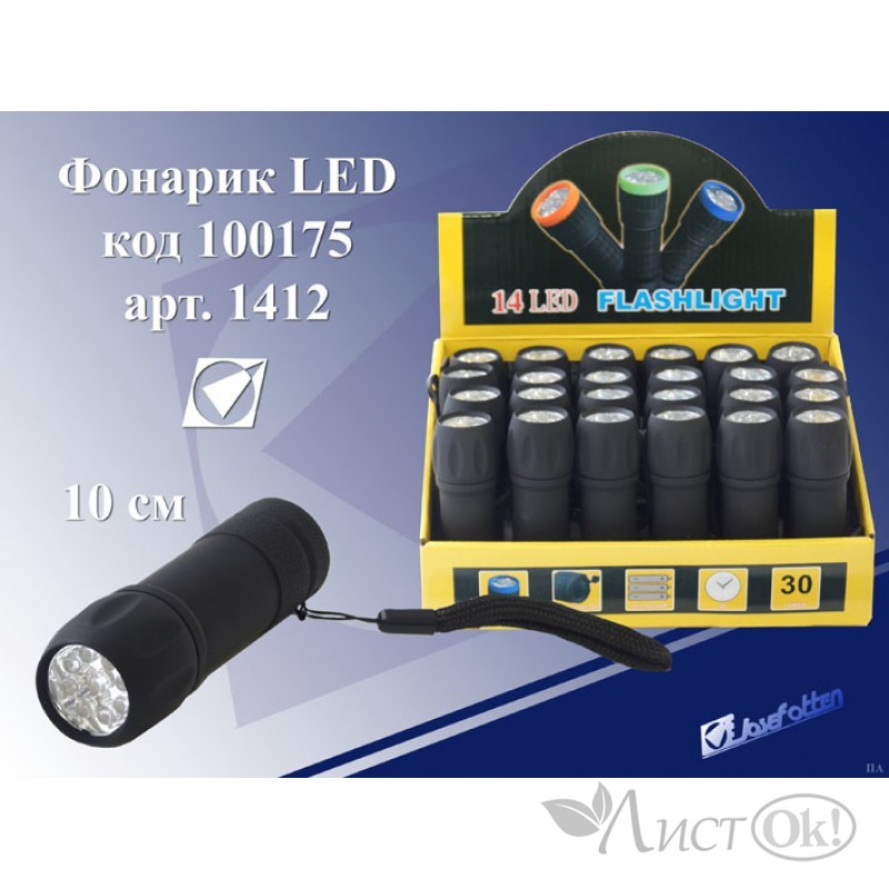 Фонарик LED влагозащищенный, 10см, без батарейки (мизинчиковые 3шт.) 1412 черный