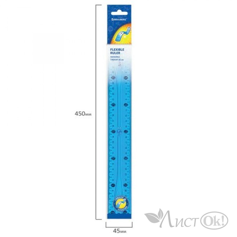 Гибкая ударопрочная линейка BRAUBERG предназначена для чертёжных и измерительных работ.