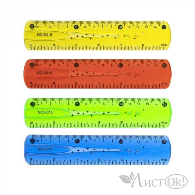 Линейка 15см, гибкая, 2 шкалы см, цвета ассорти, пакет ПВХ (пластик) AL6105 Alingar