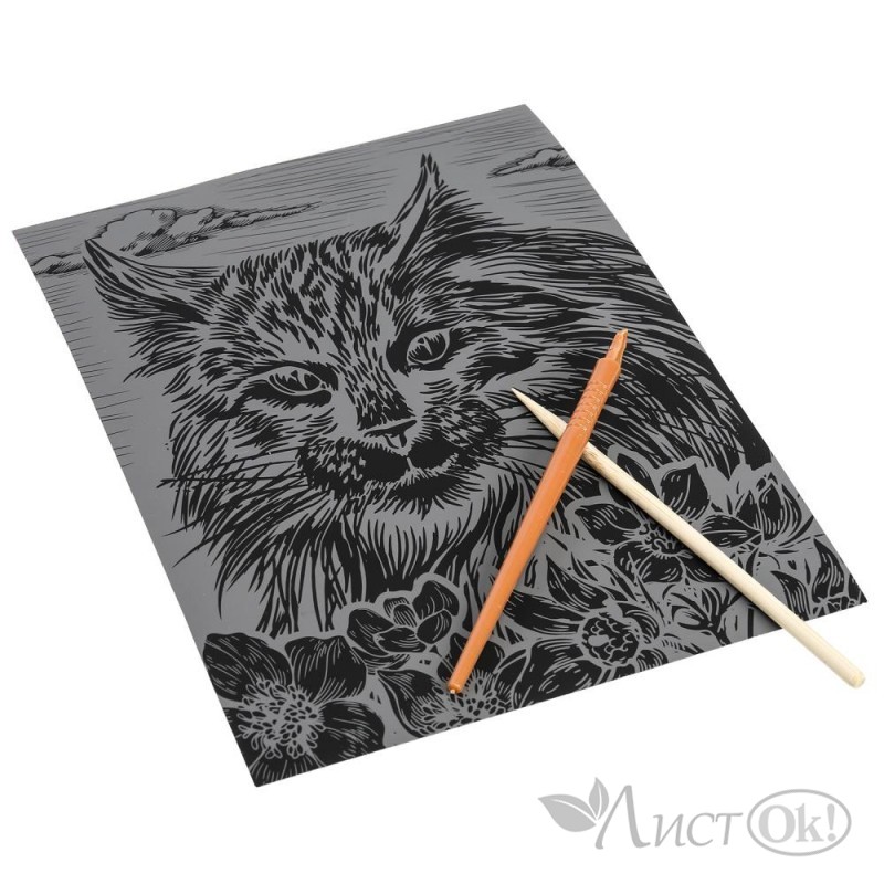С помощью данного набора юный художник сможет создать эффектную блестящую картину на чёрном фоне. Контур рисунка уже нанесён на основу, остаётся только процарапать изображение специальным штихелем. Можно не повторять каждую черточку, главное — соблюдать направление штриха! Готовая поделка станет отличным вариантом для подарка близким или для украшения интерьера комнаты.