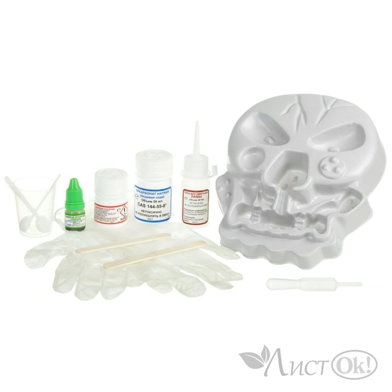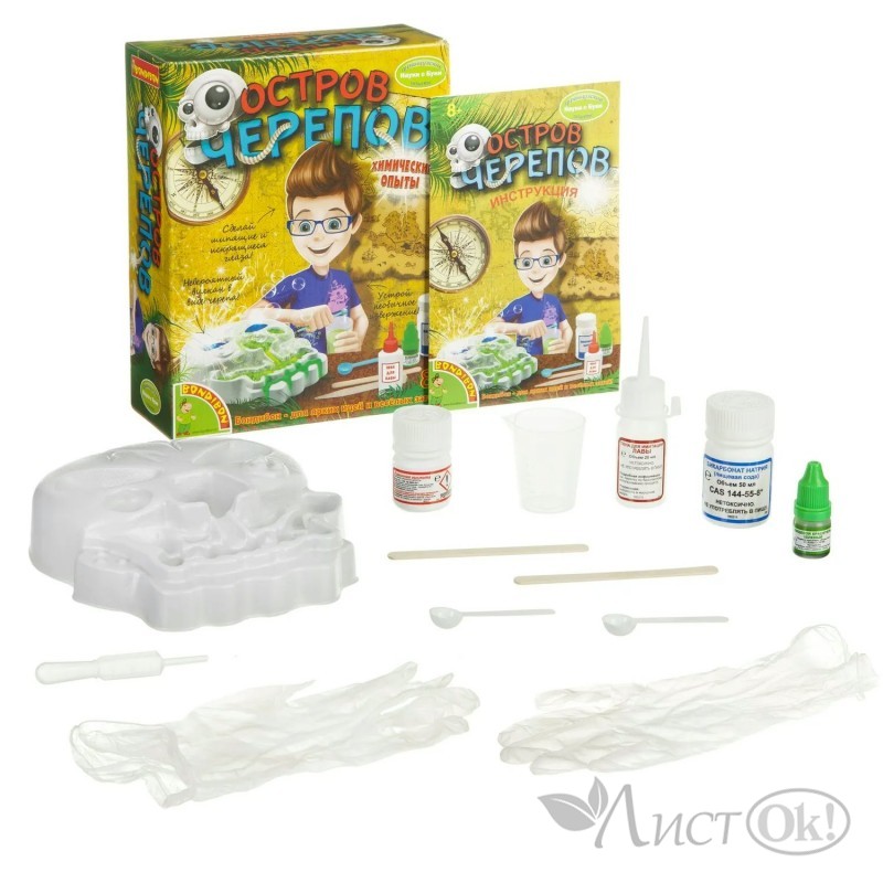 Череп – это Ваша рабочая станция для проведения экспериментов с химическими реакциями. Вы сможете устроить необычное извержение и сделать зеленые бомбочки, выясните, что соединение щелочи и кислоты приводит к выделению углекислого газа, который вырывается наружу в виде пузырьков. Набор для экспериментов ОСТРОВ ЧЕРЕПА от Бондибон помогает развить познавательные способности и интерес к наукам, внимание и аккуратность. Модель вулкана в красочной упаковке - отличный подарок для ребенка на день рождения, Новый год и по любому другому поводу.