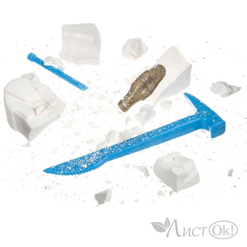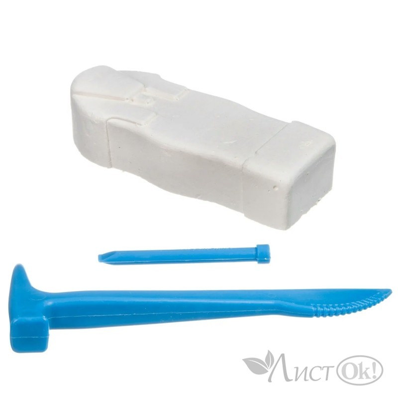 В набор входят: гипсовый блок для раскопок, инструменты.