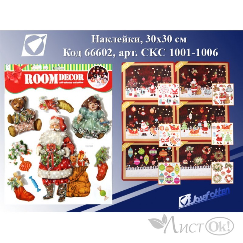 Наклейки - Новогодние 3D, CKC1001-1006 Праздник,30х30см,асс J.Otten
