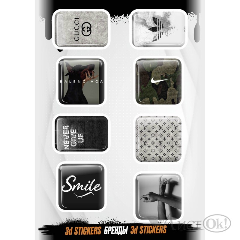 Наклейка 3D "Бренды" (цена за 1 лист) RSM_0001 NalepKiNG