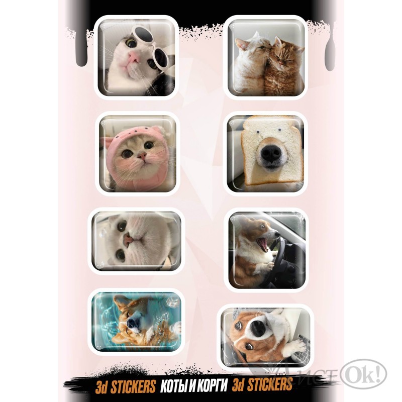 Наклейка 3D "Коты и корги" (цена за 1 лист) RSM_0004 NalepKiNG