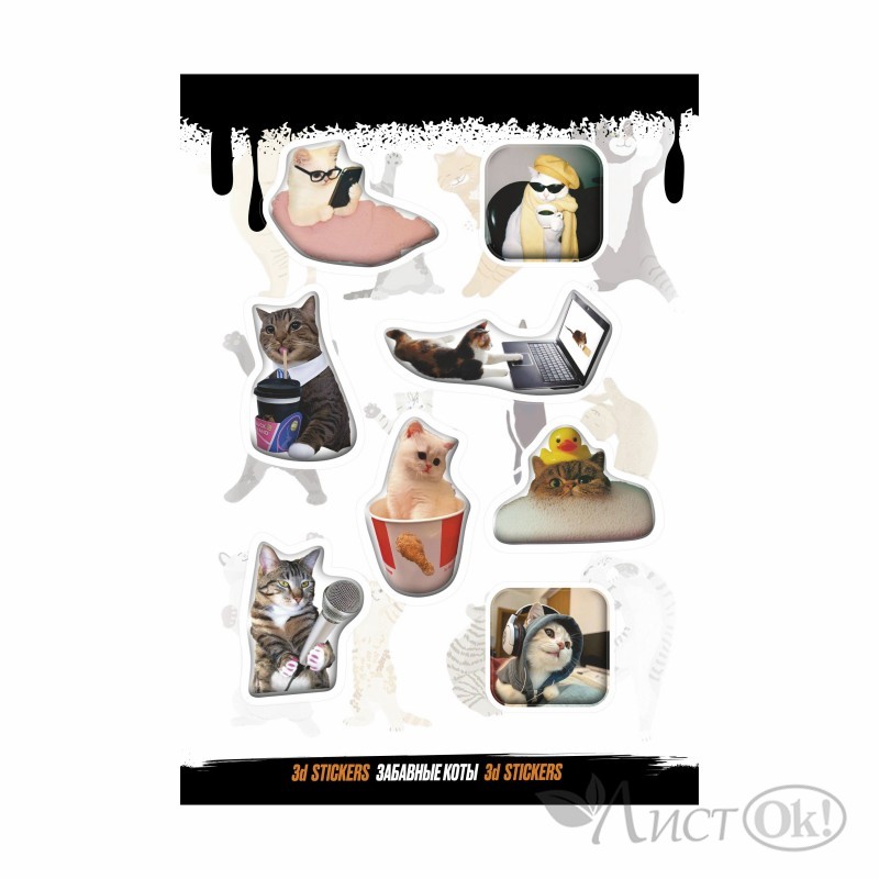 Наклейка 3D "Забавные коты" (цена за 1 лист) RSM_0124 NalepKiNG