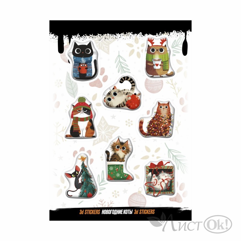 Наклейка 3D "Новогодние коты" (цена за 1 лист) RSM_0142 NalepKiNG