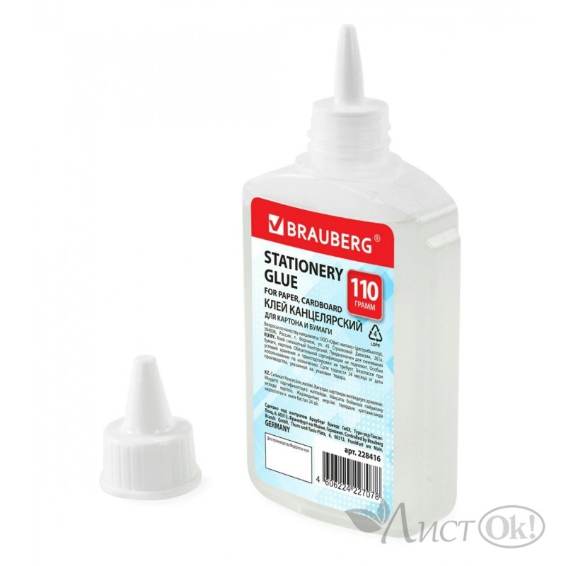 Клей канцелярский силикатный BRAUBERG во флаконе предназначен для склеивания бумаги, картона и пр.