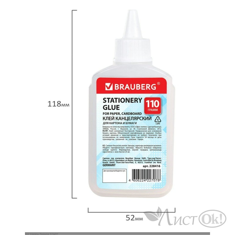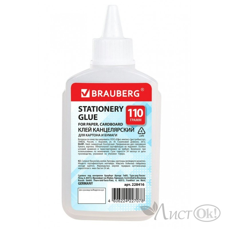 Клей силикатный 110г "Standard" (для бумаги, картона) 228416 Brauberg