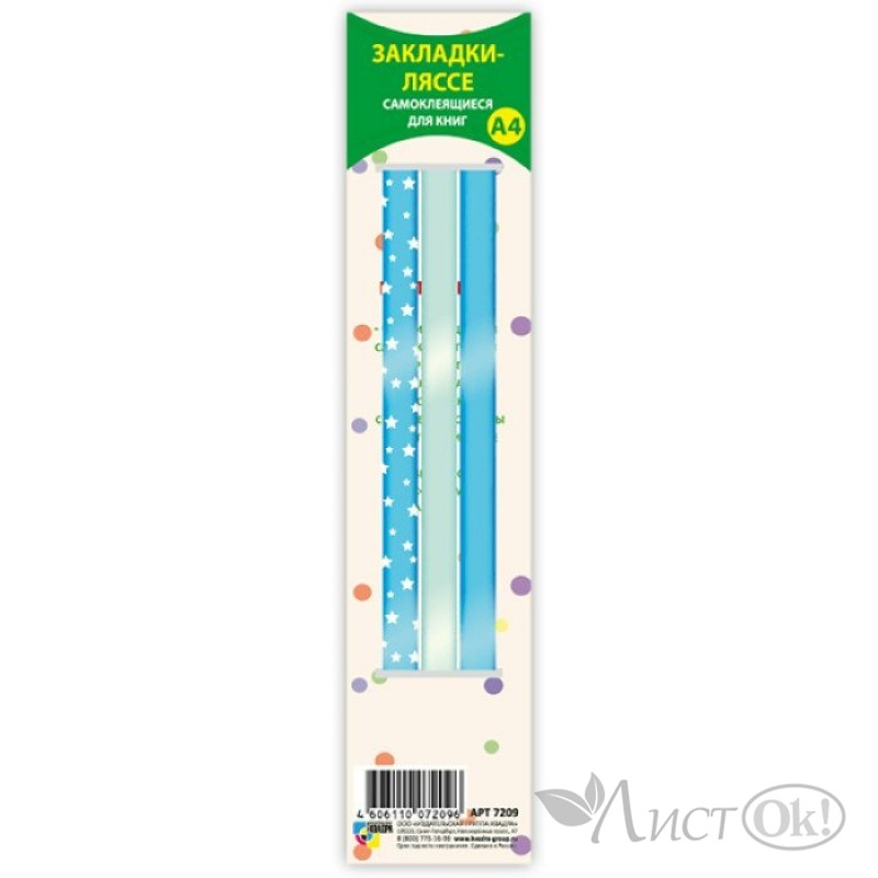 Закладки-ляссе для книг и учебников форматом А4 (длина ляссе 365 мм), ширина ляссе 10 мм, в наборах 3 закладки разных цветов, каждая закладка-ляссе - с клеевым слоем для крепления к книге. Упакованы в пакеты с европодвесом.